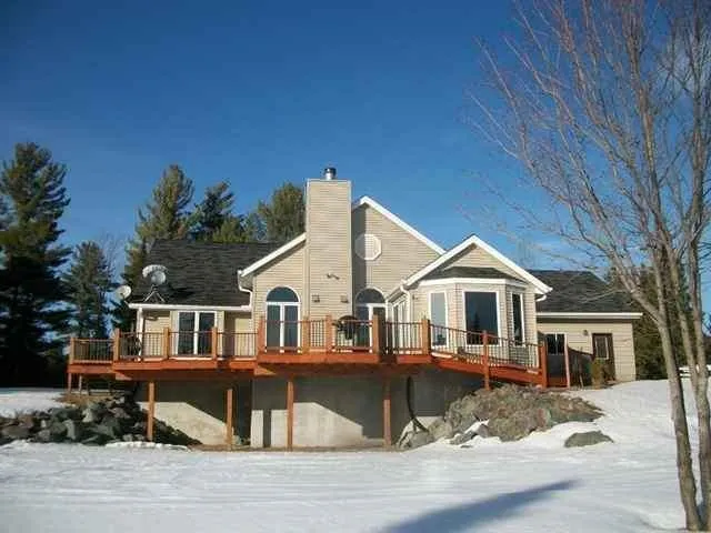 Michigan Riverfront Home For Sale - This absolutely gorgeous three bedroom, three bath home is located on a 22.5 acre wooded parcel with Little Dead River frontage! The large living room features a fireplace centered between windows that overlook the large deck and river view. The dining area and kitchen have hickory wood flooring, and cherry cabinetry, and share those beautiful views! The Master Suite contains it's own bath with whirlpool tub, separate shower, and walk-in closet. This home is heated, and cooled, by a Geo-thermal heating system. The landscaped yard leads to private hiking and biking trails for outdoor fun! Occupancy 14 Days After Closing.