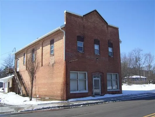 Historical Red Brick Country Store, Classic Old Style Town Building. 57x27 lower, store front, 16x15 Kitchen, storage & utility rooms. Mens/ womens bathroom, full basement for storage. New boiler furnace, 2 water heaters, plus 3 bd 1800 sq. ft. upstairs apt. w/separate entrance. So many possibilities, many updates including roof, some windows, electrical, flooring, and more. Great rental or commercial investment. Quiet small town living.Land Contract, Rent w/option or just rent.
