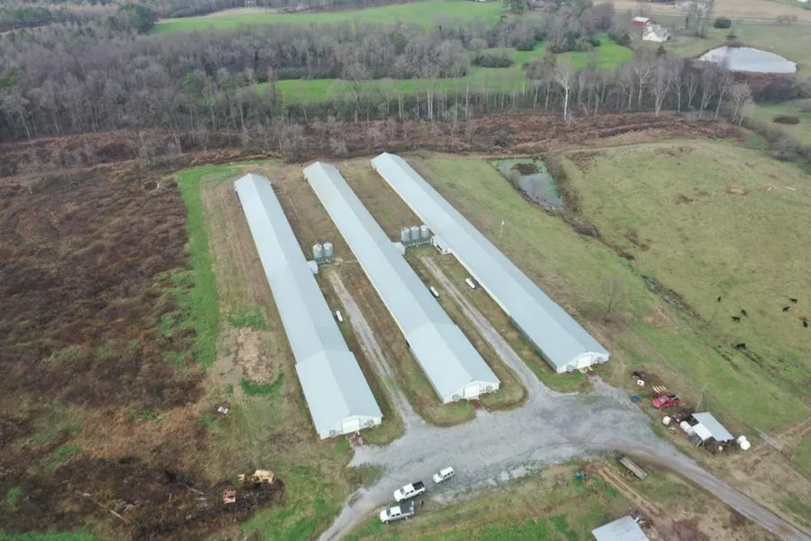 Riedlinger Farm is a 3 house broiler poultry farm for sale with home, barns and 45+/- acres, mostly open pastureland. The 3 40x500 poultry houses were built in 1999, Updated in 2019, contracted with Pilgrims. growing a 6+ lb bird, 5 flocks per year. Natural gas coming to the area very soon per the seller. The houses are equipped with: Choretronics 2 Controllers Choretime Feedlines Lubing Drinkers Total Radio Alarm Bi-Fold doors LB White Tube heat There's a large 100x80 horse barn/shop, a litter/composter shed, a 70x50 barn for hay and currently housing pigs. The main house is 3,000+ sq ft site built. There is another older home of no value on the property. Projected gross income of $160,000. The Seller will give the buyer a concession of $50,000 at closing. All prospective buyers must be prequalified before setting an appointment to view this farm. Minimum down payment requirements apply. Get in touch with a PoultrySouth Team member to get prequalified.