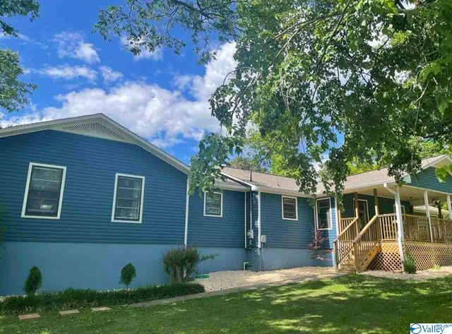 Charming home w/ detached building Convenient to Guntersville, Scottsboro, Huntsville and boat ramp. home is 2180 SF, Outside bld is 432 SF 3 bed 2 bath w/bonus room.Located on a quite street w/ mature pecan trees & almost one acre of land on a corner lot. This home features a workspace in the garage, large new front porch, large back patio deck perfect for entertaining Owner has spent over 55k in last year with renovations. new roof 30 year warranty, new siding, new french drain, new support beam, new front porch, new septic system, new gutters & gutter guard, new river rock entry. Outside building is being sold as-is and is wired for electricity. Buyer to verify all facts.