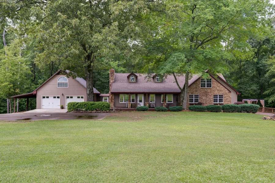 Home is nestled on it's own private oasis w/over 4.70 AC to roam. Option to purchase additional 12.80 acres. This 4 BDRM home offers 2 BDRM's on main level w/private BA's & walk-in closets & laundry room, huge family RM w/fireplace,vaulted ceiling,family sized kitchen w/walk out,secluded grilling deck & covered sitting area. Upstairs includes the 3rd BDRM w/private staircase & BA,large media RM,office w/seperate private staircase & playroom over garage. Walk-out basement w/living area has FP & wet bar,4th BDRM & bath walk-in closets.Detached 36x36 shop w/half bath,drive through shop & 17x27 basement/shop is perfect for storage.Storm shelter has 12" block filled w/concrete & rebar & 1/2 bath.