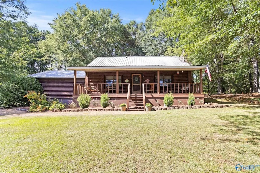 This 1 1/2 story log cabin located within the city limits of Albertville is a rare find. The 3 bedroom, 2 bath home is located on a sizable 3.62 acre lot. Features include: gas log fireplace in the living room, screened in back deck, covered patio, covered front porch, 2 car garage with side entry into the home, detached temperature controlled storage building/workshop, additional detached storage building, charming barn built in 1978, and asphalt driveway leading to the property. The gorgeous wooded lot and walkable neighborhood awaits its new owner!