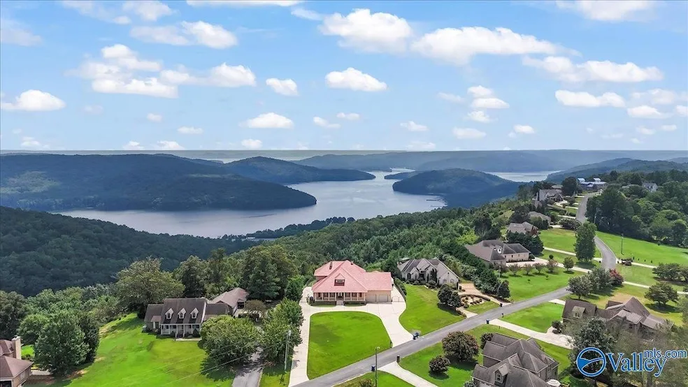 Soak in sweeping bluff views of Lake Guntersville & the mountains while relaxing by your private in-ground pool, on the spacious back porch, or deck above. This custom-built home is loaded with luxury touches 2 master suites, a chef s kitchen with island, walk-in pantry, breakfast nook & custom cabinetry, plus formal dining and a dedicated office. A 2nd family room with wet bar & fireplace offers the perfect retreat. Elevator, 4-car garage, insulated basement, whole-home generator & travertine tile complete this one-of-a-kind property!