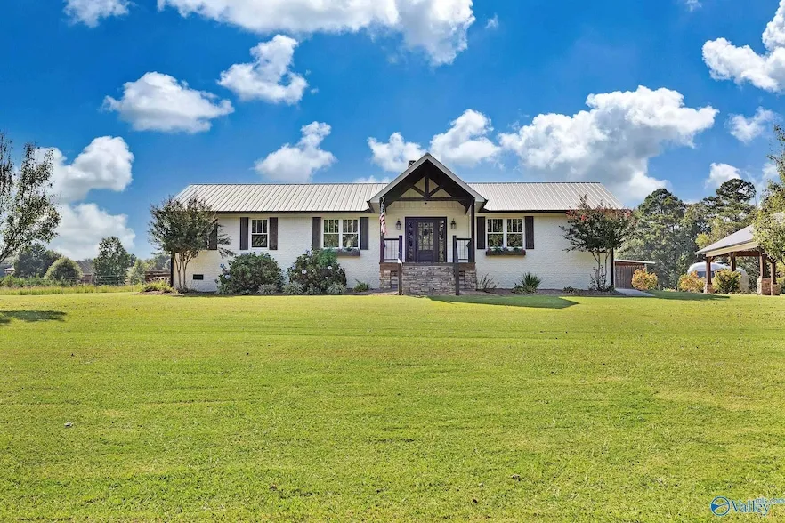 This completely updated 3 bedroom, 2 bath home sits on a beautiful 2 acre setting and features an open floor plan designed for comfort and functionality. The living room showcases a striking stone fireplace and flows into the updated kitchen with new appliances and a gas range. The spacious primary suite offers a tile shower, double vanity, and walk in closet. Outdoor living shines with a screened in back deck featuring vaulted tongue and groove ceilings and a floor to ceiling stone fireplace, ideal for relaxing or entertaining. Additional highlights include a timber framed covered carport and a large workshop with roll up doors, electrical, concrete slab, and covered awning.