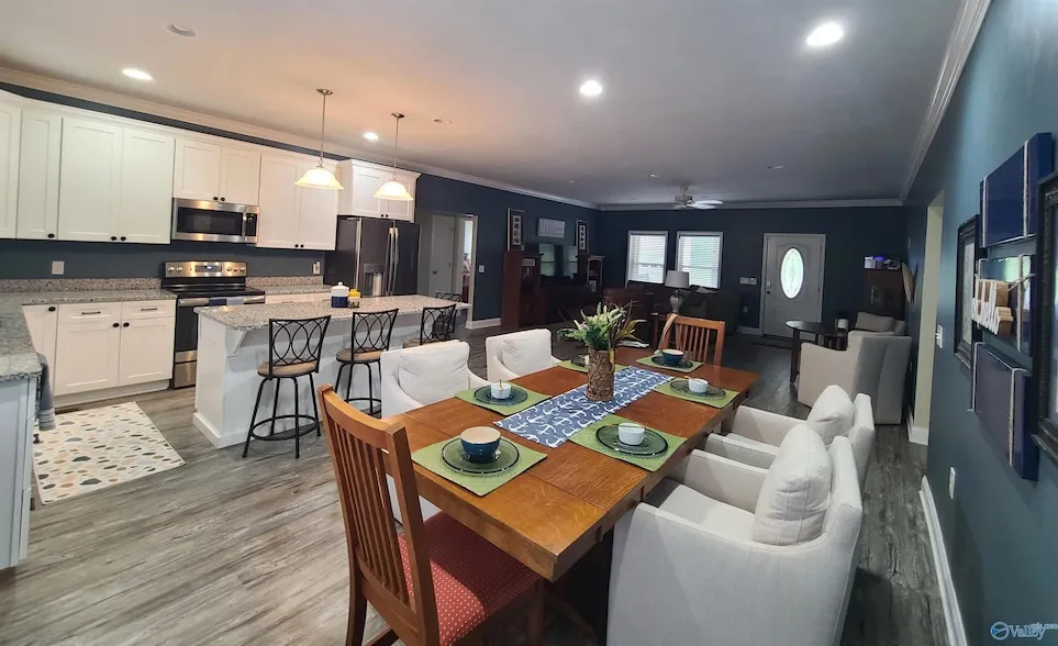 This stunning 3-bedroom, 3-bathroom home offers 2,030 sqft of beautifully designed space with an open floor plan, perfect for entertaining. Nestled in an ideal location at the heart of Lake Guntersville, this property provides both privacy and breathtaking views of the serene lake. Step outside to a large screened-in porch where you can unwind and fully immerse yourself in the natural beauty that surrounds the home. For water lovers, the property features a boathouse with a 2-slip lift, ensuring easy access to the lake. Additional amenities include an underground stream nearby, an RV hookup, a detached garage/storage building, and a bonus room above the garage for storage space.