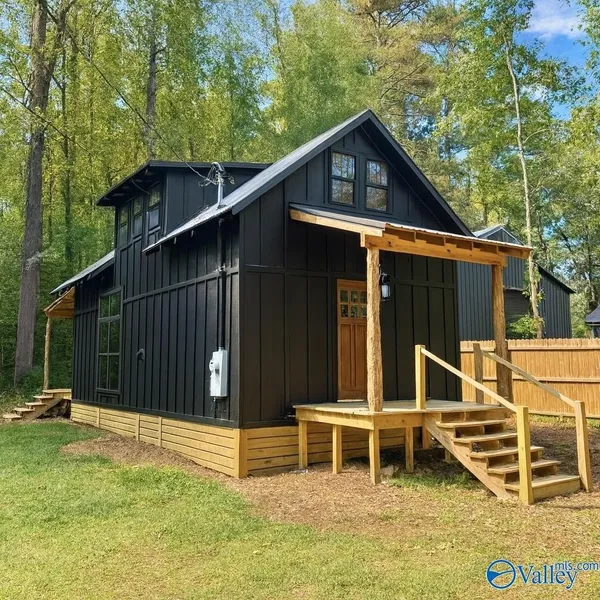 Ready to make a deal!!! Lake Access property at Lake Guntersville! Community boat ramp just a short golf cart ride away. Almost half an acre lot that joins TVA lakefront property. Build your perfect lake home and have a nice guest cabin to live in while you build! New Cabin with Hardie siding, spray foam insulation, vaulted tongue & groove ceiling, LVP & Tile Flooring, Andersen & Pella windows. Eat-in Kitchen with granite counters and stainless appliances, main level bedroom and bath, and large loft bedroom. Nice private backyard and covered back deck. With your own path, take an easy walk through the woods right down to the lake. Could also make a great vacation rental investment.