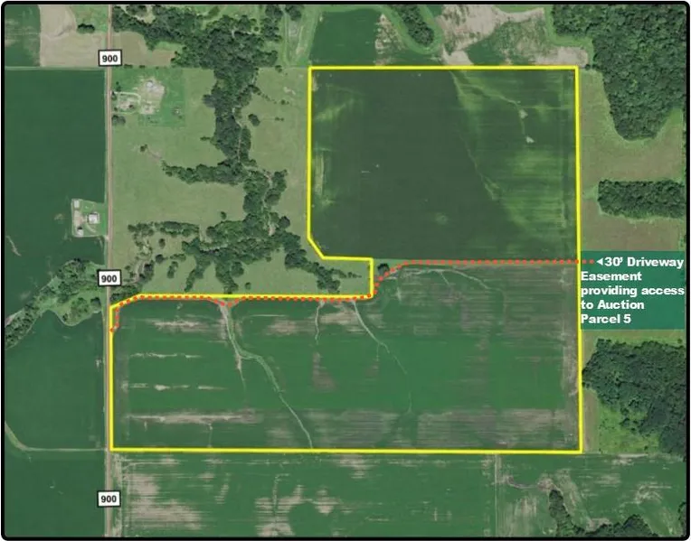 Parcel 3 - 145.57 acres, m/l, with 143.85 crop acres and a P.I. of 132.73. Property is located on the east side of CR 900 E. Open lease for 2018. Land subject to an annual lease for deer hunting through 6/1/2018. There is a 30' driveway easement that runs from CR 900 East over the current field lane to provide access to Auction Parcel 5. Rock Lime has been applied and Buyer will be responsible for reimbursement to the farm tenant at time of closing.