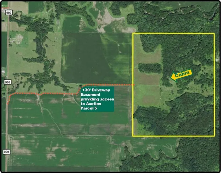 128.9 acres, m/l, with 26 acres enrolled in a CRP contract. Contract pays $6,130 annually and expires 9/30/2025. Land is subject to an annual lease for deer hunting that expires 6/1/2018. Farm is accessed by 30' driveway easement that originates at CR 900 East. Terrific hunting tract with nice income and primitive hunting cabin.