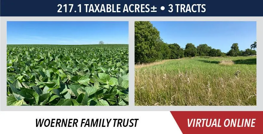 The property contains a total of 217.1 taxable acres and will be sold in 3 tracts. Tracts 1 & 2 represent productive tillable cropland and tract 3 represents a combination of productive tillable cropland and mature timber offering exceptional outdoor recreational opportunities.