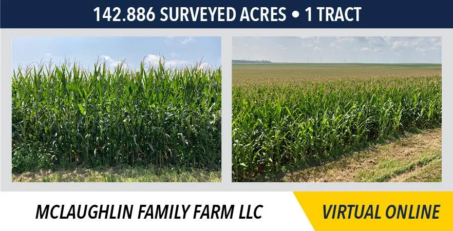 The McLaughlin Family Farm will be sold on a price per acre basis, based on surveyed acres.