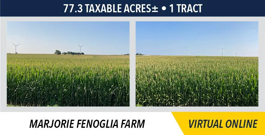 The Marjorie Fenoglia Farm is located 5 miles southeast of Toluca, IL or 30 miles north of Bloomington, IL. The farm is further described as Section 35, T29N-R1E, Bennington Township, Marshall County, Illinois.