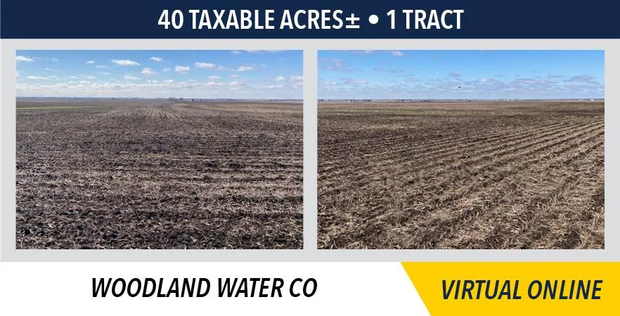 The Woodland Water Co farm will be sold on a price per acre basis, based on taxable acres.