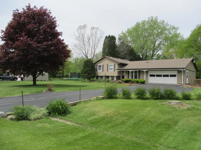 Attractive 3 bedroom home with 1.5 acres. Newer carpet in living room and bedrooms. Recreation room with stone fireplace. Remodeled 1/2 bath in lower level. Nice deck, patio, and shed. Gorgeous setting with property extending to next street. Blacktop driveway. Taxes reflect all 3 parcels.
