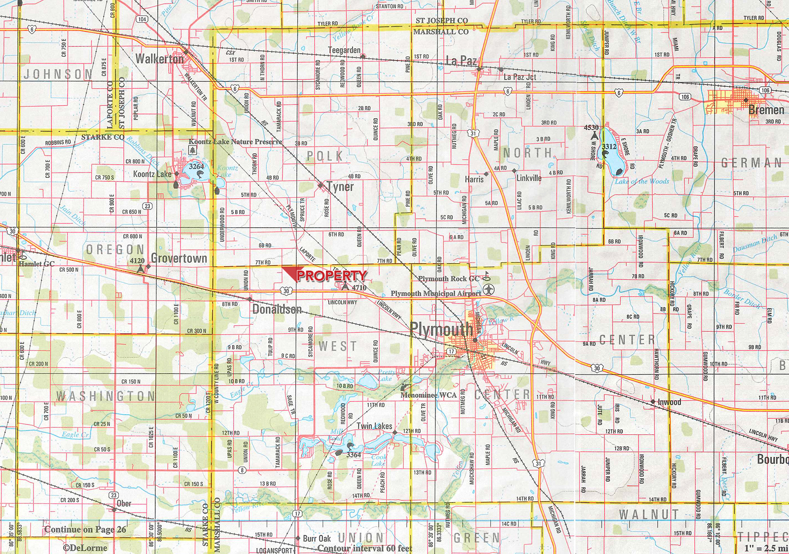 From Plymouth, head West on US 30 for approximately 6 miles. Turn North onto Tulip Road and continue .2 miles, follow the S-curve. At this point, the roadway will be designated as Tamarack Road. Continue for and additional .5 miles. The property will be on the West side of the road. The property is located on the Southwest corner of the intersection of Tamarack Road and 7th Road.