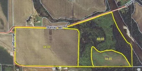 Farm is river bottom land with tillable, pasture, and timber acres.