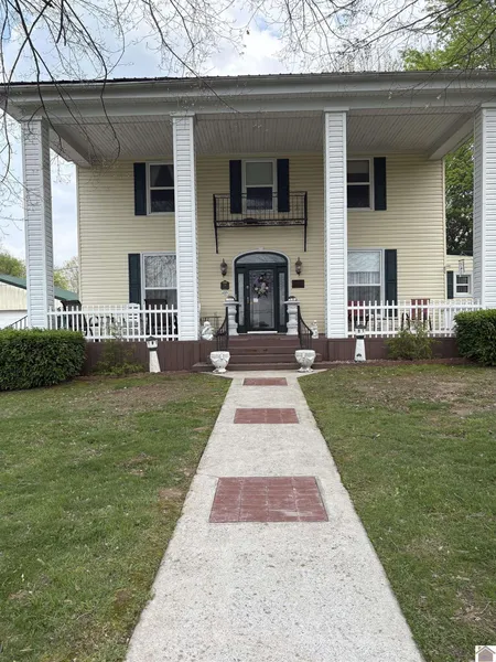 Own a piece of KY history with Calvert City’s Oak Hill, which is on the National Register of Historic Homes, built in 1853 by Calvert City’s founder. Extensively updated in 2010, this 4+bedrms 3 bath home has a 1200 sq ft garage/workshop, mower shed and small storage shed with a circular concrete drive. Main floor combine living/dining spacious country kitchen w/ island, granite countertops, mud rm, utility. M bedrm & 2 baths on main floor. 2nd floor sunroom overlooking the back patio and serene rear area of 3.4 ac property. Office, sitting/bedrm and 2-guest bedrms, bath on upper level. Front and back porch sitting at its best w/ outdoor entertainment area. Lovely yard, grounds and entertainment areas. If you love older country style homes, peaceful setting and have the benefits of city living in a golf cart community known for its great park system, City events, friendly neighbo...