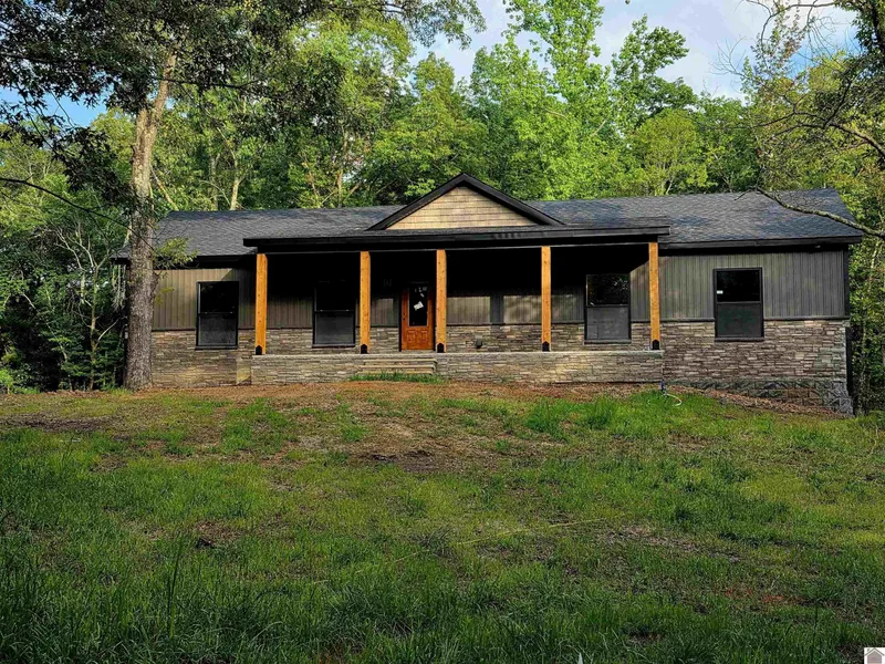 Brand new custom built home in Serenity Shores. Lots of privacy, can't see the house from the road. Long driveway through the trees with gates to lock it off. Large 3000 sq ft home on a hill with large wood columns and stone/siding exterior. Beautiful covered front porch. Multi-level deck off back. Open floor plan with amazing details. Hardwood finishes on primary bedroom ceiling. No carpet in the home. Wet bar, walk-in closets, tiled shower and tub. Basement is it's own living area with lots of glass. Beautiful wooded views. Lots of parking. Use of the subdivision launching ramp included.