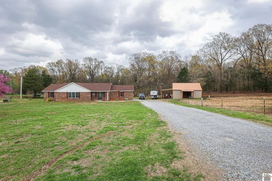 Your dream mini farm awaits! This charming 3 bedroom, 2 bathroom brick ranch with just under 1800 sqft sits on 1.8 +/- acres, complete with fenced pastures and a barn giving you plenty of space for animals or hobbies. Inside, the spacious family room features vaulted ceilings, beautiful wood floors, and a cozy brick fireplace. The eat-in kitchen offers ample counter and cabinet space and opens to the back patio, making outdoor grilling a breeze. The primary suite offers privacy from the other bedrooms and includes an ensuite bathroom and separate his and hers closets. A convenient utility/mudroom is located just off the 2-car garage. Enjoy peaceful country living from the covered front porch or unwind on the back patio and large backyard. Plus, with a roof less than 2 years old, this home is ready for you to move in and make it your own!