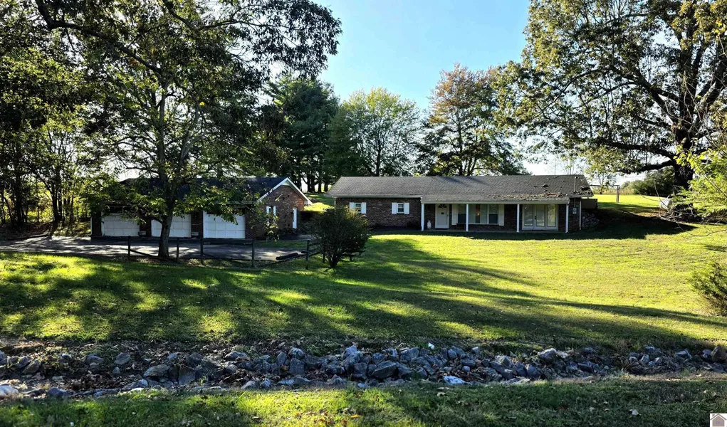 Brick berm home on 1.29 acres. Over 2000 sq ft. Detached 3-car garage. Covered front porch. Lots of parking. No restrictions. PRIVACY. Hom has a large 2nd living area with a utility room large enough to share a 3rd bath. Turn den into 4th bedroom with ensuite bath. Lots of natural light. Open kitchen and dining. Very close to the Benton city limits and 4-lane, but you can't see another house from it.