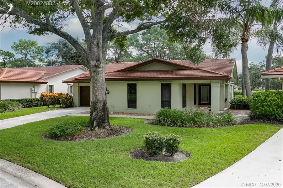 This home is right out HGTV! Updated 3 bedroom, 2 bath home with an oversized private yard in desirable Martin Downs Country Club. Light and bright updated kitchen, new stainless steel appliances (2020), butcher block counter seating for casual family meals and prep. Entertain in your formal dining room and spacious living room with vaulted ceilings. Plantations shutters throughout, knock down ceilings, laminate floors in the main living areas and bedrooms. Updated vanities in the bathrooms, crown molding, and the roof was replaced in November 2011. Sliders lead to the screen-in patio overlooking the lush landscaping. Optional membership at The Village Club and Preserve which includes 2 pools, tennis, pickleball, fitness trail and dog park. Visit www.villageclubpreserve.com for more details. Don't miss this wonderful opportunity to call this place your home.