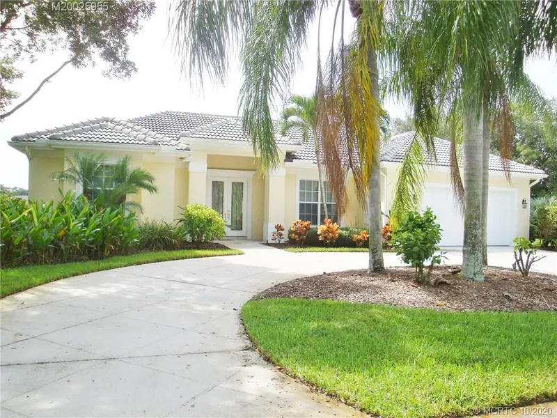 Located in The Estates of Oak Ridge in the heart of Palm City. Hard to find...Lakefront pool home. Built in 2003 by Design Homes (CBS Construction). This home has 3 bedrooms plus an office, 2nd bathroom is also the cabana bath leading to the pool. Granite counters in the spacious eat in kitchen featuring a breakfast area overlooking the pool and lake. Sit & relax while sipping your morning coffee. This oversized 2+ car garage is 26' length by 23' wide...great size to put a small boat. This gated community has a pool, tennis courts, basketball, clubhouse and a boat ramp with OCEAN ACCESS. The irrigation feeds off of the lake. The propane gas tank is rented and feeds the pool heater & B-B-Que. Sellers cannot close until on or before Dec. 15th. Being sold as-is with right to inspect. Buyer to pay title. TV in living room, Dining Room set & pool furniture is included.