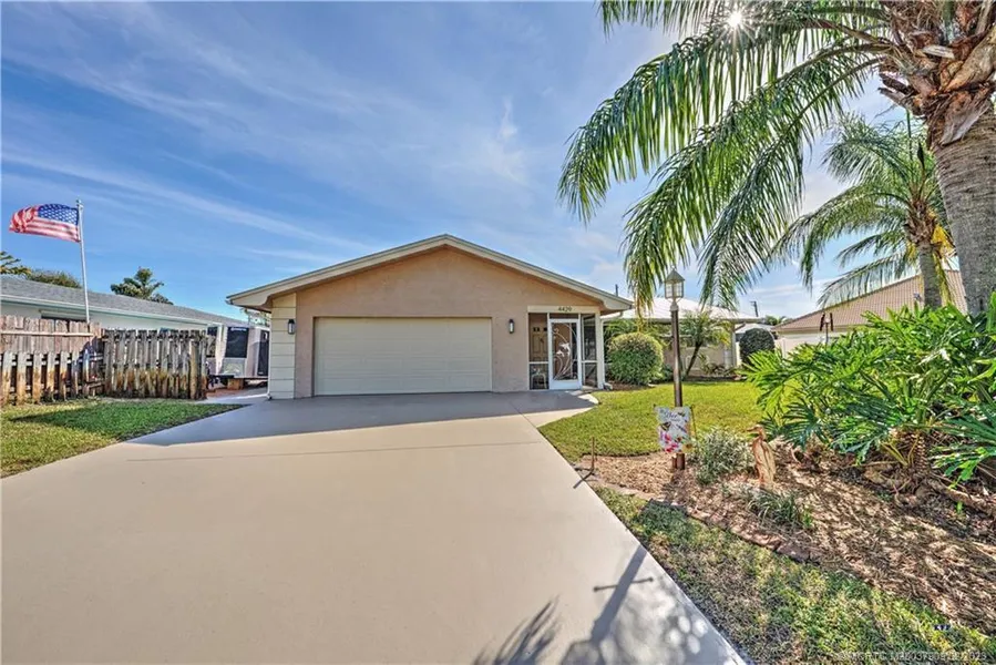 This fantastic pool home is on one of the best streets in Rocky Point! Situated high up on a large lot with a south exposure with fantastic breezes. Enter through a screened covered front porch and foyer entry to a spacious comfortable living room, an open updated kitchen and a split bedroom plan for privacy. The kitchen, dining area Florida Room and covered patio all overlook the large screened in pool. The oversized garage is huge and there is room for a boat on the side. A/C installed in 2023. There is a day dock you can use if you join the voluntary dock association, $50. annually. All sizes and measurements approx.