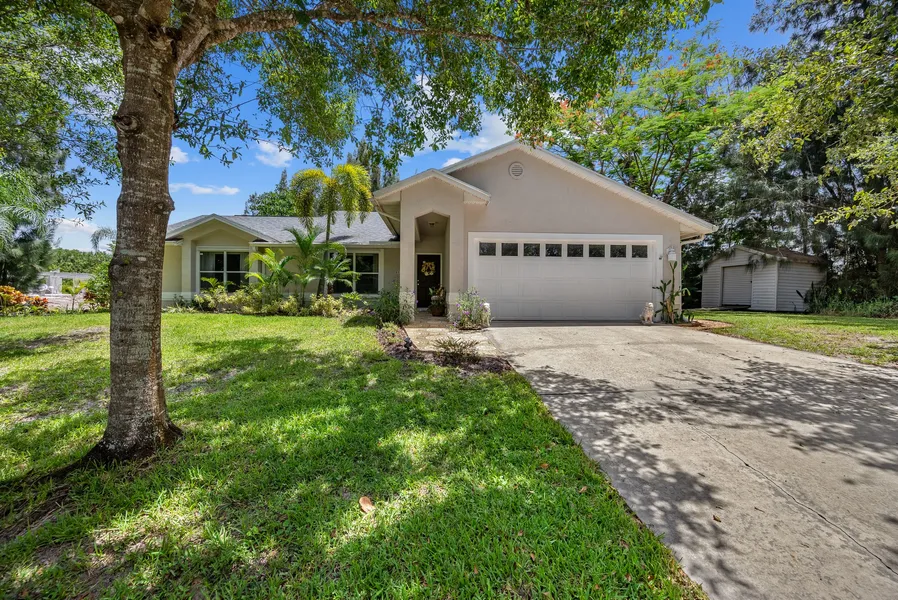 NO HOA-Beautifully updated this 3-bedroom, 2-bath home resides in a country like setting offering peace & tranquility. A spacious, open-concept floor plan seamlessly integrates the living, dining and kitchen areas. Tasteful design elements, including high ceilings and faux hardwood porcelain tile flooring create a completely modernized space. Whether you're a culinary enthusiast or simply enjoy hosting gatherings, this kitchen is a dream come true. Featuring crisp white wood cabinetry, granite countertops, and stainless-steel appliances. The split bedroom plan hosts generous size rooms all with walk-in closets and creates privacy for you and your guests. The totally remodeled master bath includes a luxurious huge shower with dual shower heads. Step outside into a large lanai, the perfect retreat whether relaxing or entertaining. Plenty of room for boats or toys with a boat ramp just down the street. Roof replaced in 2017. Easy access to I-95 is perfect for commuters.
