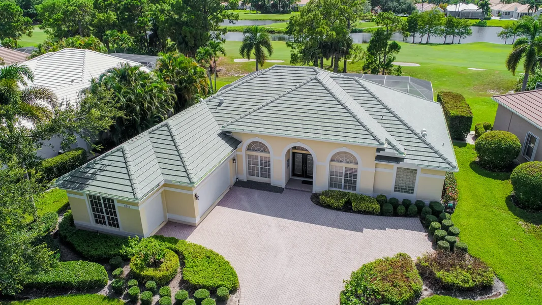 Experience unparalleled luxury on the 11th Fairway of the renowned Arnold Palmer Championship Golf Course with 3 bedrooms plus den, 3 full baths with one serving also as a cabana bath, side entry 2 full car garage plus dedicated golf cart garage. This exquisite home features 12-foot ceilings in main living areas, enhancing its open, airy feel. The spacious living room boasts a full wall of pocketing glass sliders, seamlessly connecting indoor and outdoor spaces, leading to a screened pool with a motorized awning. The master suite is a private retreat with his-and-her closets and a lavish master bath. A stylish den with custom built-ins and two guest bedrooms with an adjoining bath complete this exceptional home. Enjoy the gourmet kitchen, ample sized laundry room with utility sink, and a prime location with top-rated schools and easy access to I-95 and the Florida Turnpike. New Roof 2021