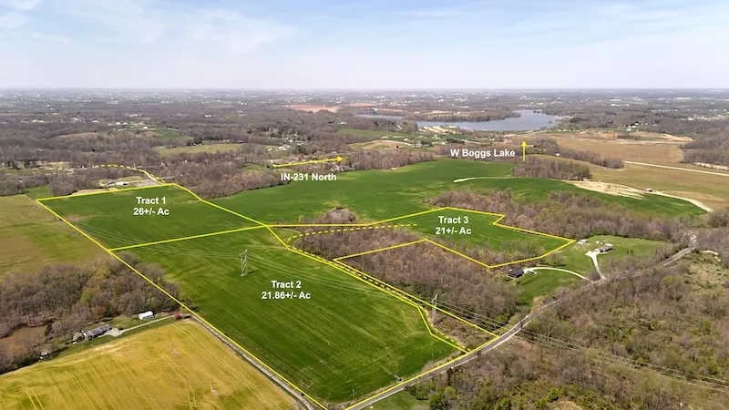 (Tract 1) This premier large acreage build site is one of the best-located sites in the area. Set back off US 231 access via a recorded easement into the property. Once on the property, you will see the expansive and open ground that is perfect for building a custom, forever dream home. The seclusion and privacy on this tract is astounding. What to expect is long-range farming views, with occasional wildlife crossing the property. The commute to Loogootee is less than 3 minutes to the south while going north, you can be on I-69 or at Crane within 15 minutes. Currently in crop production with more tillable acreage available. ( Land has tenant farmer with farming rights till crops are harvested this fall 2025 )