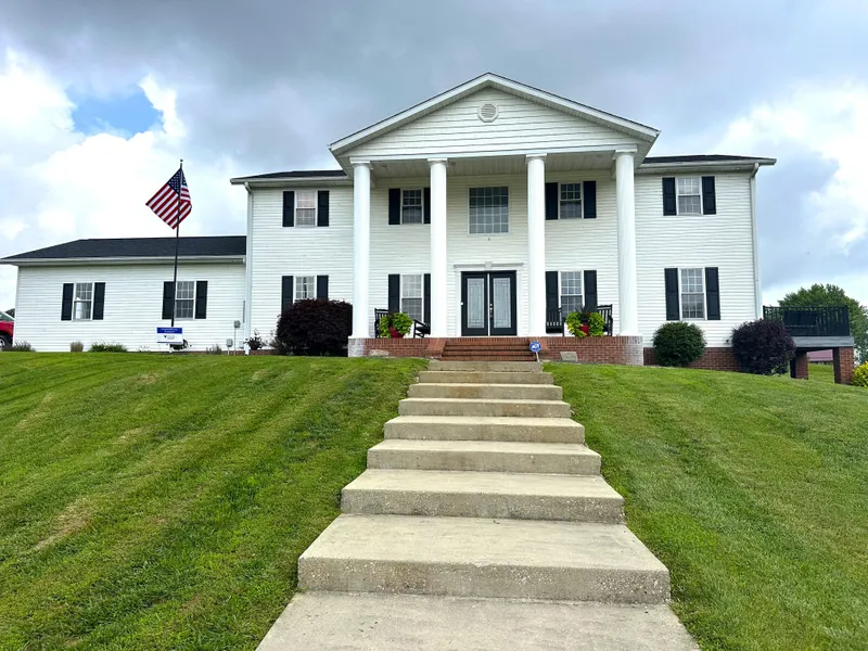 Welcome to this magnificent, expansive colonial-style home, featured in the coveted Bellbrook subdivision in Loogootee. Offering the perfect combination of luxury and comfort, this 4,820 square foot residence provides country living, surrounded by beautiful land and charming homes. With 7 generously sized bedrooms and 4.5 bathrooms, this home provides ample space for a large family or multi-family living. The fully finished walkout basement includes a kitchenette start, a large bedroom, a full bathroom, and a huge separate storage room, creating additional flexible living, safety and storage space. The home also features private offices on both the main and upper levels, perfect for work or study. Step outside to find a new in 2020 in-ground heated saltwater fiberglass pool with an automatic safety cover, paired with a beautiful walkout balcony offering sweeping views of the pool and ser...