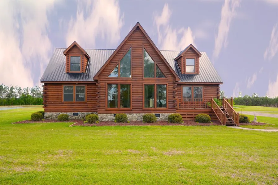 Private Paradise on 21.41 acres w/two stocked ponds.Log Home w/separate guest cabin. Main house includes master suite on each floor,large kitchen boasts stainless appliances, separate breakfast nook and dining. Views from every room. Guest Cabin w/full kitchen, full bath and upstairs loft with spiral staircase. Open yard space with putting green, maintenance shed, private drive and gate just minutes from shopping.