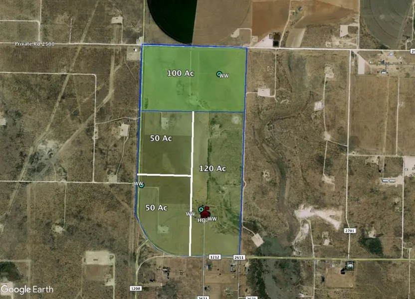 Multi use property with water! Flat and develop-able tract currently planted with hay grazer. Hard corner of 1208 6/10 of a mile frontage. Great bird hunting: crane and dove due to being one of the only grain fields nearby. Whatever your taste in investments, this tract has it! Also not too far from the interstate and Mustang estates.