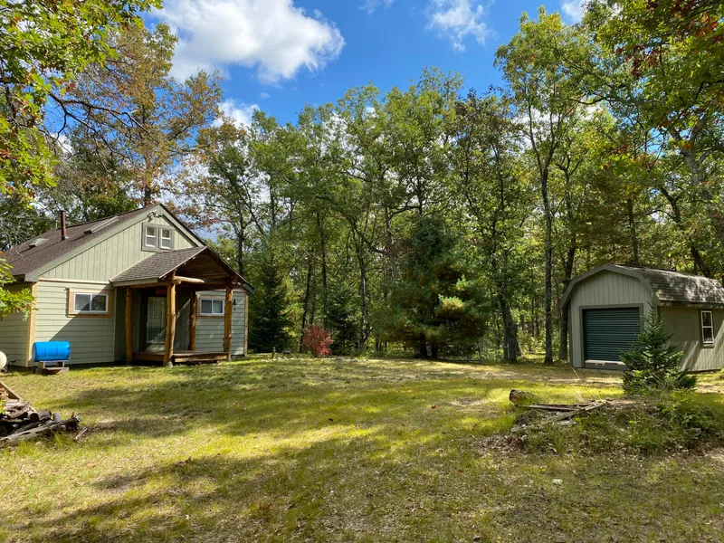Wind back in about a mile and a half, through and ADJACENT TO FEDERAL LAND, you'll find the get-away you've been dreaming of. Solid 2-BR, seclusion and privacy, with a circle driveway. ON BLACK LAKE, a quiet creek-fed basin for pan fish, kayaking or viewing. NO ELECTRICITY. NO WELL. Just candles and an outhouse. But if you bring in your gallons of water to drink and use the rainwater barrels to flush, there is a decent bathroom set-up inside. White pine interior. Tongue & groove knotty pine on ceilings. And cement board exterior. Relax on the deck overlooking the lake, sit by the fire pit and roast marshmallows or hike the trails for miles. Deer can be found strolling through the marsh, eagles will be seen above, and frogs galore! This is your new escape. (Only 5 owners on the lake.)