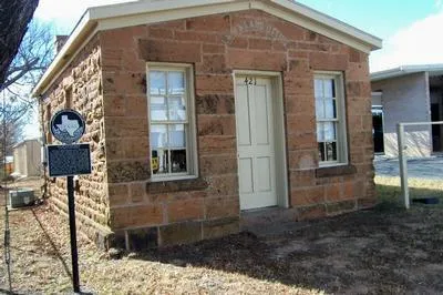 Historical commercial building (circa 1880-1890s) orginally used as the Holmes and Bierschwale Land and Law Office. Pine wood floors, beaded board ceiling, ca/ch, 1/2 bath, cut sandstone exterior and standing seam metal roof. Texas historical marker. All city services.