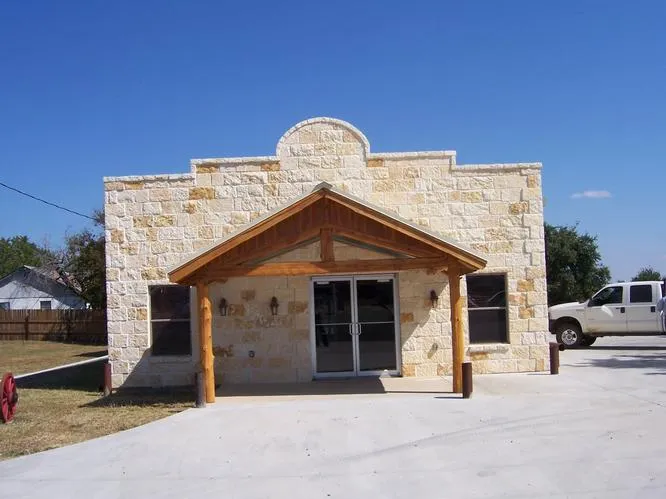 This is a GREAT commercial property consisting of a practically new (constructed in 2009)attractive Austin/limestone office and metal warehouse. The office consists of nearly 1000 sq. ft. divided neatly into four rooms in addition to a full bath and separate kitchen area. Limestone rock walls and stained concrete floors complete the office area. The office is wired for phone service and internet and has central heat/ac. The warehouse area consists of 1280 sq.ft., fully insulated, and well lit. There are two 12 ft. overhead doors and an RV hook-up. A large concrete parking lot ensures adequate parking space and the area is nicely landscaped with huge limestone boulders and large old live oak trees. The back side of the lot is very attractive with lots of shade from oak trees and privacy is insured with a metal privacy fence.