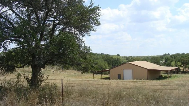 SELLER IS MOTIVATED TO SELL...COME MAKE AN OFFER. THERE IS AN ASSUMABLE LOAN OF $74,000. SELLER WILL LOOK AT SOME OF THE DOWN PAYMENT OTHER THAN IN CASH....CARS TRUCKS, GUNS OR WHAT HAVE YOU GOT?...LETS MAKE A DEAL! Over five acres, hill-top building site with panoramic views of the Texas hill country. Lower portion of the land has a 2,400 square foot insulated metal building on good slab, electric box and wired and some lighting. Built in 2006-2007. 8'X 8' interior storage and 8'X 8' bath with sink and commode. Two 10'X 12' roll-up doors and two entry doors on each end of the building. The building also has approx. 1,200 square feet of covered area on two sides. This is a great shop building with a overhead rail system for a hoist. The building could be converted to make a nice home with covered patios and plenty of storage. Community water and light restrictions. Come take a look at ...