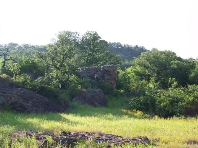 Gently rolling terrain with sandy loam soils and moderate granite outcrops. Post oak, live oak, and a mixed variety of native brush are scattered throughout the ranch. There is a good turf of native grasses.