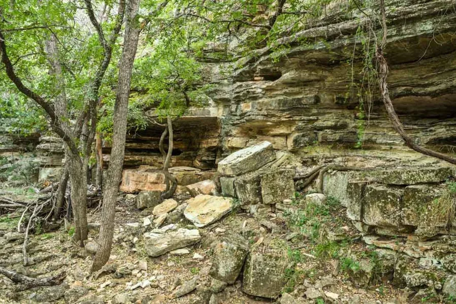 LAND: Topography ranges from flat top country with medium cedar brakes and many oaks, falling to exquisite creek bottoms blanketed with towering hardwood trees. Beautiful homesites with distant views are several, and some of the limestone cliffs alongside the streambed are breathtaking!