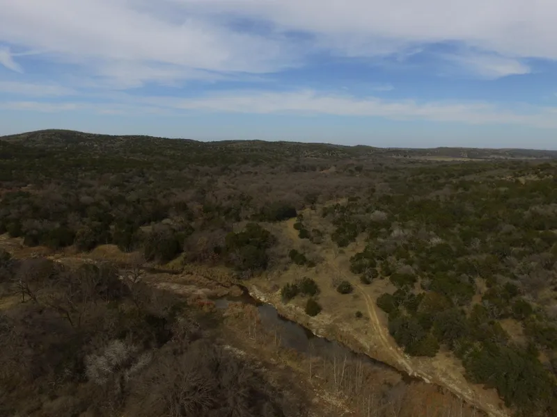 Tracts F (64 +/- acres) and G (59 +/- acres) feature hilltop views overlooking approx. 1330 feet of deep live water along frontage with year round Honey Creek. There is also an older 1-story wood frame house, several wood/tin sheds and an artesian well next to house on subject. Individual Tracts can be bought together of separately. Proceeds to benefit the Mason ISD Scholarship Foundation.