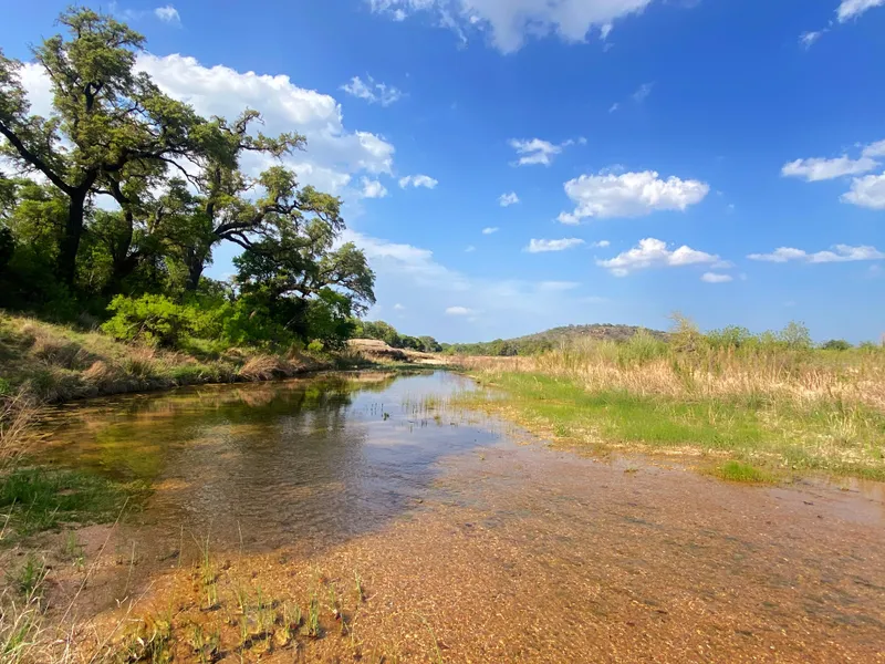 Beautiful views and over 5000 ft of combined creek frontage make this an outstanding property! It's only minutes from both Mason and Fredericksburg and located in the award-winning Mason school district. A 600 sf hunting cabin located on the bank overlooking Beaver Creek needs some TLC but has lots of potential. Large oaks with very few mesquites as well as pastures with improved grasses (approximately 40 acres of coastal bermuda suitable for hay) make the location ideal for grazing livestock and still has enough cover for wildlife-whitetail deer, turkey, and quail. Beaver Creek is a live-water creek with sandy access to the water as well as gorgeous bluffs for viewing the beautiful Texas Hill Country. Little Church Creek is a wet-weather creek and there is also a large spring-fed pond. A 10-20 gallon per minute well provides water for livestock and the hunting cabin. CTEC electricity on the property services the cabin and the well pump.