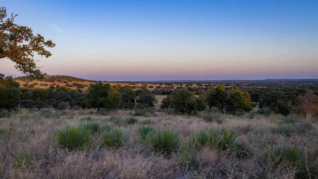 The land features gently rolling hills accented by towering live oaks, native grasses, and natural vegetation typical of the Texas Hill Country. Multiple scenic building sites offer privacy and long-range views, allowing for flexible development options. The balanced topography provides an ideal mix of open areas and shaded oak-covered sections, creating a timeless and inviting ranch environment.