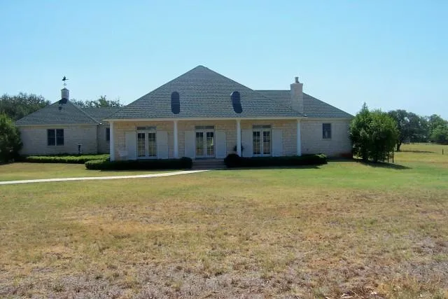 Plantation Home with southern flare! Stately, custom built, two bedroom and two bath on 2.279 acres. Approx. 1837 sq. ft. living space and 624 sq. ft. double garage. Front and rear column porches. 10-12 ft. ceilings with crown molding, 9 ft. solid wood Kolbe doors and windows w/wood shutters/transoms. Detailed moldings throughout. Ornate fireplace in master bedroom. Hardwood and tile floors. Extensive cabinetry. Master bath with St. Francis tub, spacious shower and bidet. Security system. Cupela with weather vane, auto yard sprinkler system and zinc dormer vents. Limestone exterior. All electric.