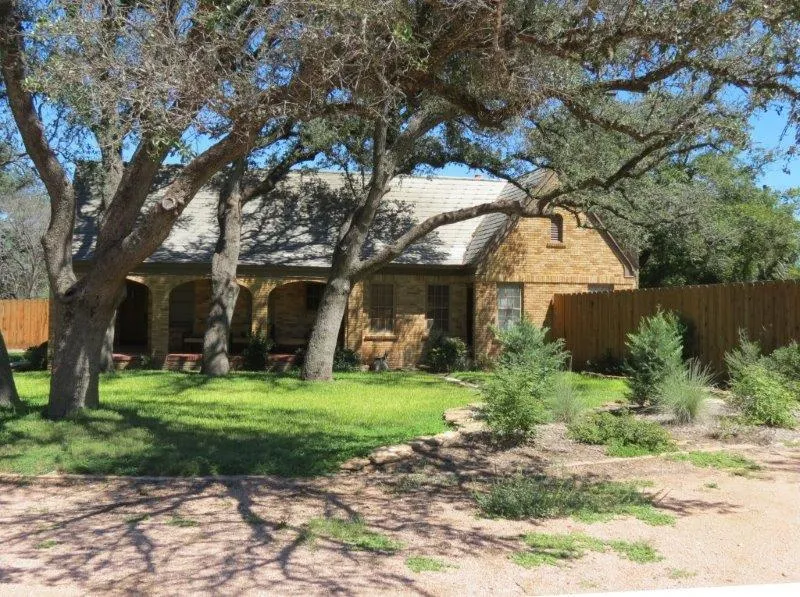 Built originally in the 1930s by Dr. Baze, this elegant Tudor Revival residence has undergone a complete, yet subtle transformation from outdated to modern without sacrificing the homes unique integrity. It is listed in the National Register of historic homes. Situated on .5 acres and within walking distance of the Mason Square, the one story Ell-plan all brick home is approximately 2000 square feet and features 10 ft. high ceilings and the original slate roof. The interior walls and ceilings are concrete stucco, and the original wood flooring adds warmth while the numerous windows enhance the airy interior. Most rooms still have the original solid wood doors and unique hardware that is irreplaceable. The formal living room boasts a wall of built-in cabinetry along with a fireplace and beautiful oak mantle. It opens to the dining room through an arched doorway. From the large dining room, you can access the kitchen. The kitchen features granite countertops, with a breakfast bar and built in sideboard with hutch. The kitchen is fully updated with custom knotty alder cabinets, high end stainless appliances, even a pot filler faucet, yet retains the original built in ironing board cabinet. A gathering place for the family, the media/family room is a sunny room with a built in entertainment center. Additionally , it has a unique door leading to the front porch. This room could serve as a fourth bedroom. All three bedrooms are generous in size. Two of the bedrooms share a full bath that has the original tile and Standard fixtures. They also have doors leading to the wonderful front porch. These doors are works of art, complete with ornate screen doors. The master bedroom boasts a wonderful wall of windows and a tiled bath with Jacuzzi tub/shower. A surprise bonus room is accessed in the middle bedroom by ladder to the attic. This room can serve as a play room, craft room, extra storage room, ect. There is also a large closet, plus access to the attic where there is additional storage. Access to the cellar is by stairway. This housed the original furnace and would serve as a great storm shelter and offers more storage. Outside, the front yard is shaded by a canopy of huge live oak trees providing shade for the front drive way area. The large, L shaped front porch is perfect for enjoying a cup of early morning coffee or a late afternoon beverage. Tasteful landscaping with native rock enhances the area. The back yard is completely privacy fenced, creating a secluded compound complete with outdoor entertainment patio. Thick Zeon Zoysia grass provides the perfect place for kids to play, and extensive landscaping with perennials make an outdoor paradise. The old water tank house provides storage and serves as utility room for washer and dryer. The back side of the tank house has been cleverly reconfigured to serve as an outdoor shower. Perfect for washing off a days work, or showering off a grubby child. Additionally, there is a two car garage that is accessed by a gate in the privacy fence. Adjoining this garage is an air conditioned Man Cave! The perfect get away space that can be whatever you want it to be. The back yard is also fenced with an area suitable for a garden, or even a swimming pool. Landscaping is extensive all around the home, and compliments the propertys natural appeal.