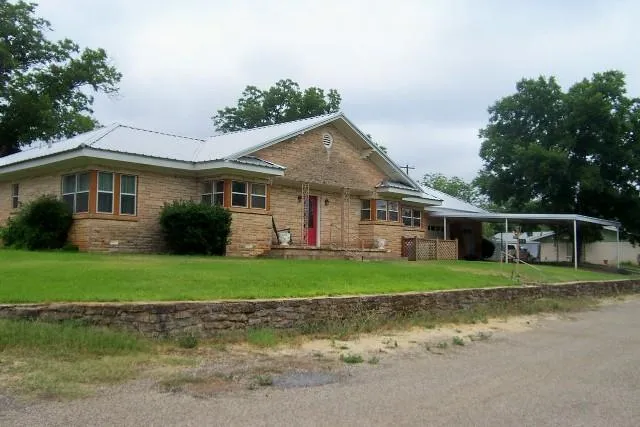 Austin stone home, custom built in the 1950s by the Brandenberger family and still owned by Brandenberger heirs. Well constructed. Abundant living space and storage. Original hardwood floors. Energy efficient windows. CA/CH. Formal living with mock fireplace. Den off kitchen. Sunroom on south side. Ceiling fans throughout. Double car garage and carport. Man's room for shop/storage on back side of garage. Needs a little updating but lots of house. Additional lot and storage barn available.