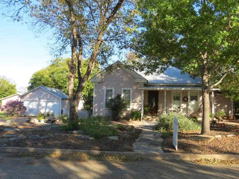 Nestled under a canopy of mature pecan trees is this charming restored Victorian 2 bedroom 2 bath home. This home features original hardwood floors, high bead board ceilings, French doors with period hardware, a spacious well lit kitchen with island and built in appliances, den, and sun room with a wall of windows that currently serves as a formal dining room but could easily be another bedroom, office or family room. One bathroom has a claw footed tub while the other bathroom has a modern shower. There is also a roomy utility room with storage. Restoration included new windows, and foam insulation in the attic, under the home and in the exterior walls, so this home is quite energy efficient as well as eye appealing. Outside, the front yard is low maintenance with stone walk ways and hardy perennial landscaping. Large mature pecan trees shade the backyard which has a sprinkler system and the long covered back porch is the perfect place to enjoy a cup of coffee. The back yard is separated by an old time split rail fence creating a separate garden area that is very pleasing to the eye.