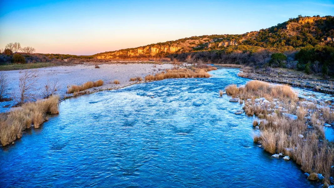 Unique river getaway with home nestled on a ridge overlooking the gorgeous Llano River. Unobstructed Hill Country views abound on this property. A small river tract which has much to offer from large live oak trees and shallow water rapids to a private setting. The home and large barn located on the subject provide opportunities to create your own personal vacation compound. When one visits the property, you experience the feel of a private mystic getaway while enjoying the abundance of nature.