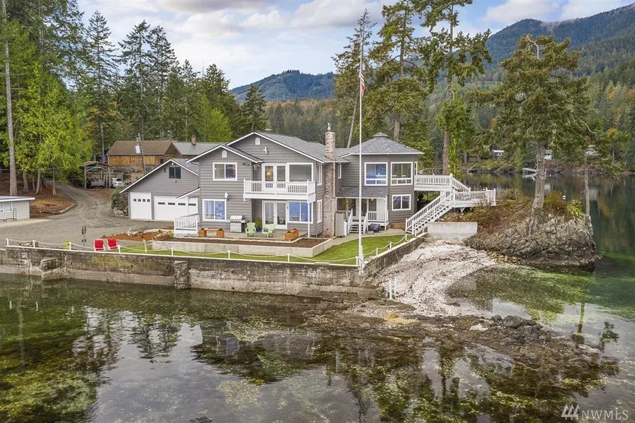 Majestic Waterfront Property on Triton Head Cove located on the Hood Canal presents unsurpassed views, peaceful pristine natural beach in a private setting. Offering 2 homes; Main House on 250 feet of waterfront with protected cove, shop 3 car garage. Vintage Waterfront Guest Cabin (separate parcel) has 100 feet of waterfront and its own pier. Tidelands included. Cabin has an attached 1 car garage. Both homes updated in 2020 with new exterior paint roofs, new flooring. Main house has a new septic installed. Open concept living views from almost every space with room to live, work, play make memories! Great cell coverage/hi-speed internet available.