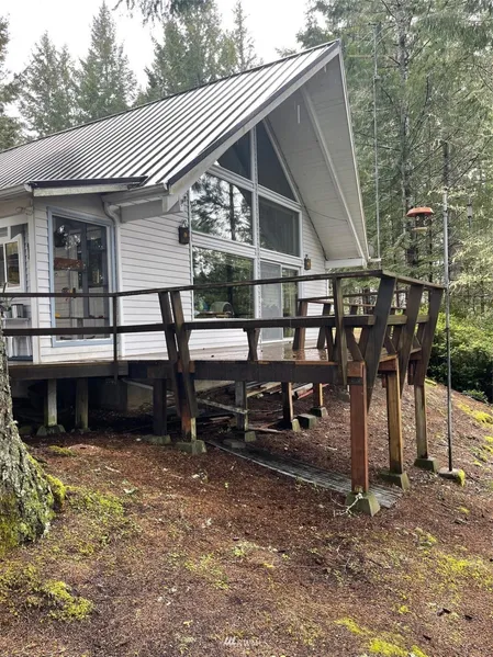 This Chalet is perfect for those who enjoy views of the Olympic Mountains and Hood Canal with all of the amenities of Twanoh Falls Beach Club which includes 400' of Community Beach with club house, dock and much more. Home has been well maintained & features two bedrooms with a third bedroom or office, custom birch kitchen cabinets, open knotty pine ceiling & a wood stove for those chilly nights. Huge deck perfect for entertaining. Three car garage and RV covered parking with oil pit. This property comes with two separate lots for expansion or plenty of room to play. Most, but not all of the furnishings convey without any monetary value.