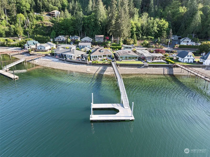 WATERFRONT! NEW 159' DOCK w/BOATSLIP! LONG, PRIVATE DRIVEWAY, OFF THE ROAD, with ample parking! OLYMPIC MTN VIEWS from your yard! HOOD CANAL! Situated minutes from Alderbrook Resort w/breathtaking sunsets of the Olympic Mountains on 50' of waterfront. Enjoy crabbing & fresh shellfish from your own beach! Main floor bed & 3/4 bath. Cozy up in front of your gas/wood fireplace, spacious dining area, open kitchen & sip coffee in your nook while enjoying water views through a wall of oversized windows. Primary ste offers 2 closets, built in drawers & sitting area. 3rd bedroom offers more water & mtn views w/walk in closet & nook. Covered front & back patio. Additional parcel across the street 2/1/756 sq ft house & HUGE 4 car garage--mls#2206148
