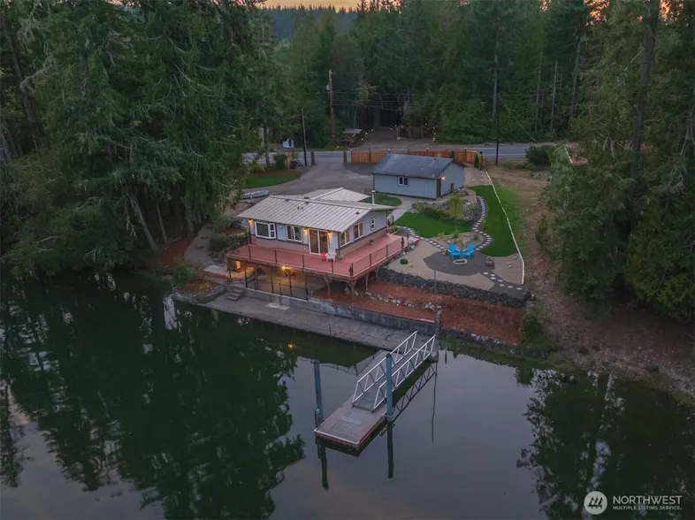 Great price for Waterfront Gem! 180' ft low bank on Case Inlet w/additional 1 acre buildable lot across the street; total of 2.2 acres to enjoy water & outdoor fun! Lovely, 2 BR, 1 full bath home w/ fresh color inside & out; Renovation in 2013 w/new electrical, windows, flooring, insulation & radiant floors. Spacious deck & landscaped yard w/ firepits & night lighting. A circular driveway w/hookups for 2 RV's. New pilings, 20' foot ramp & 12X8 platform for your water toys. And there's MORE! Additional acre is ready to build a home or shop, septic installed and approval for expansion. A trail to a private gazebo & outdoor firepit in the forest. Great location to shopping, golf, HWY & towns. Perfect full-time home, VRBO or vacation home!